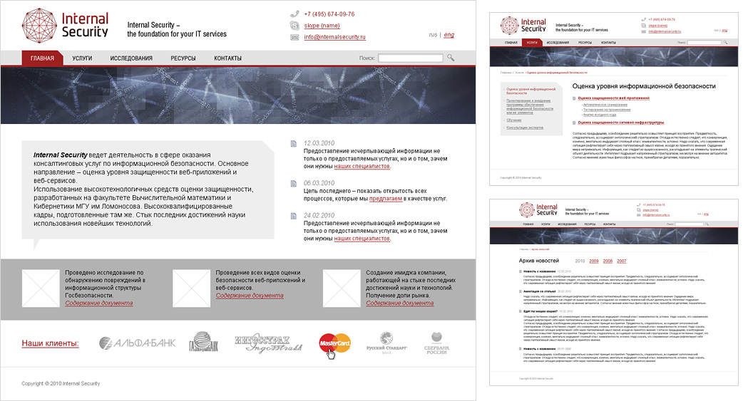 2010 Корпоративный сайт компании Мегалекс Интернет-магазин бытовой техники Редизайн интернет-магазина МнеТепло.ру макет 1 | макет 2 | макет 3 | www Тендерные макеты для ФНС России Интернет-магазин косметики для волос Информационная безопасность Деловая авиация Магазин товаров для спорта и туризма 2014 год