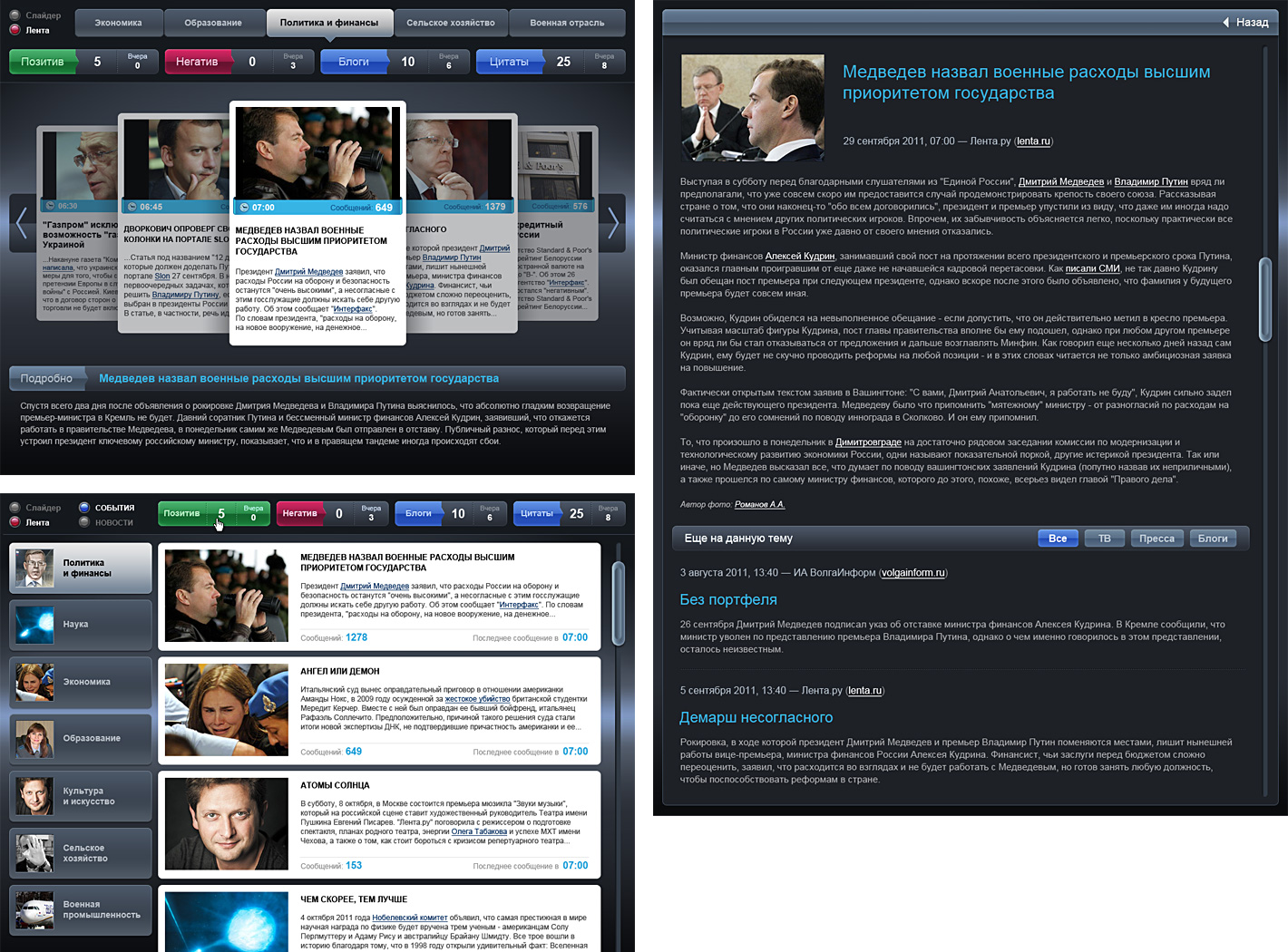 2011 Дизайн сайта для Integrum.ru Новостной интерфейс для сенсорного экрана Ремонт квартир и офисов Компания "Рыболов-Сервис" макет 1 | макет 2 | макет 3 | макет 4 | www Туристическое агентство "АльфаВояж" макет 1 | макет 2 | макет 3 | макет 4 Интернет-магазин детской одежды 2014 год